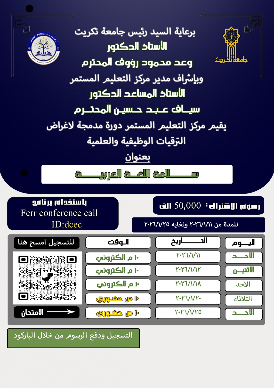اعلان دورة سلامة اللغة العربية ٢٠٢٦
